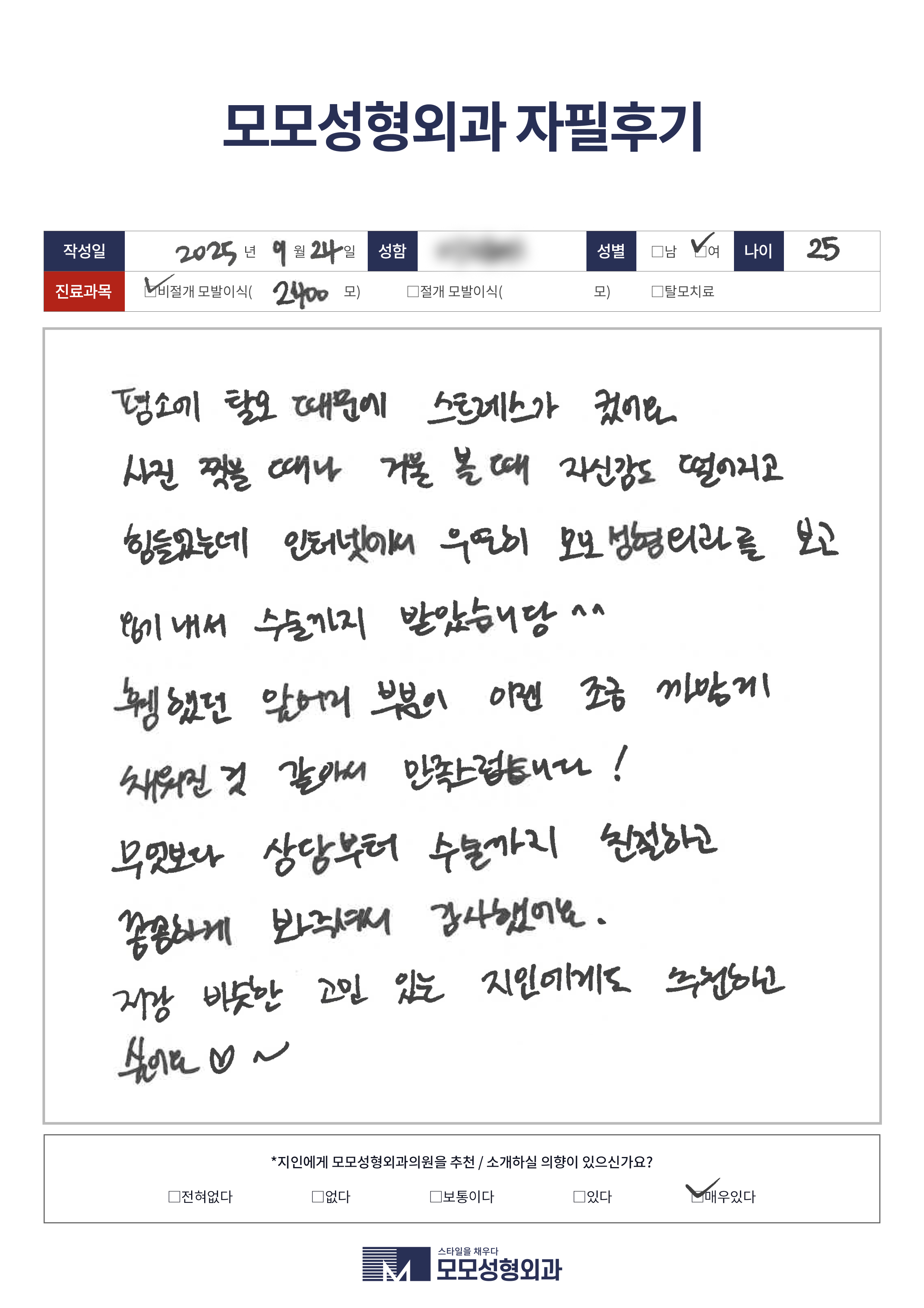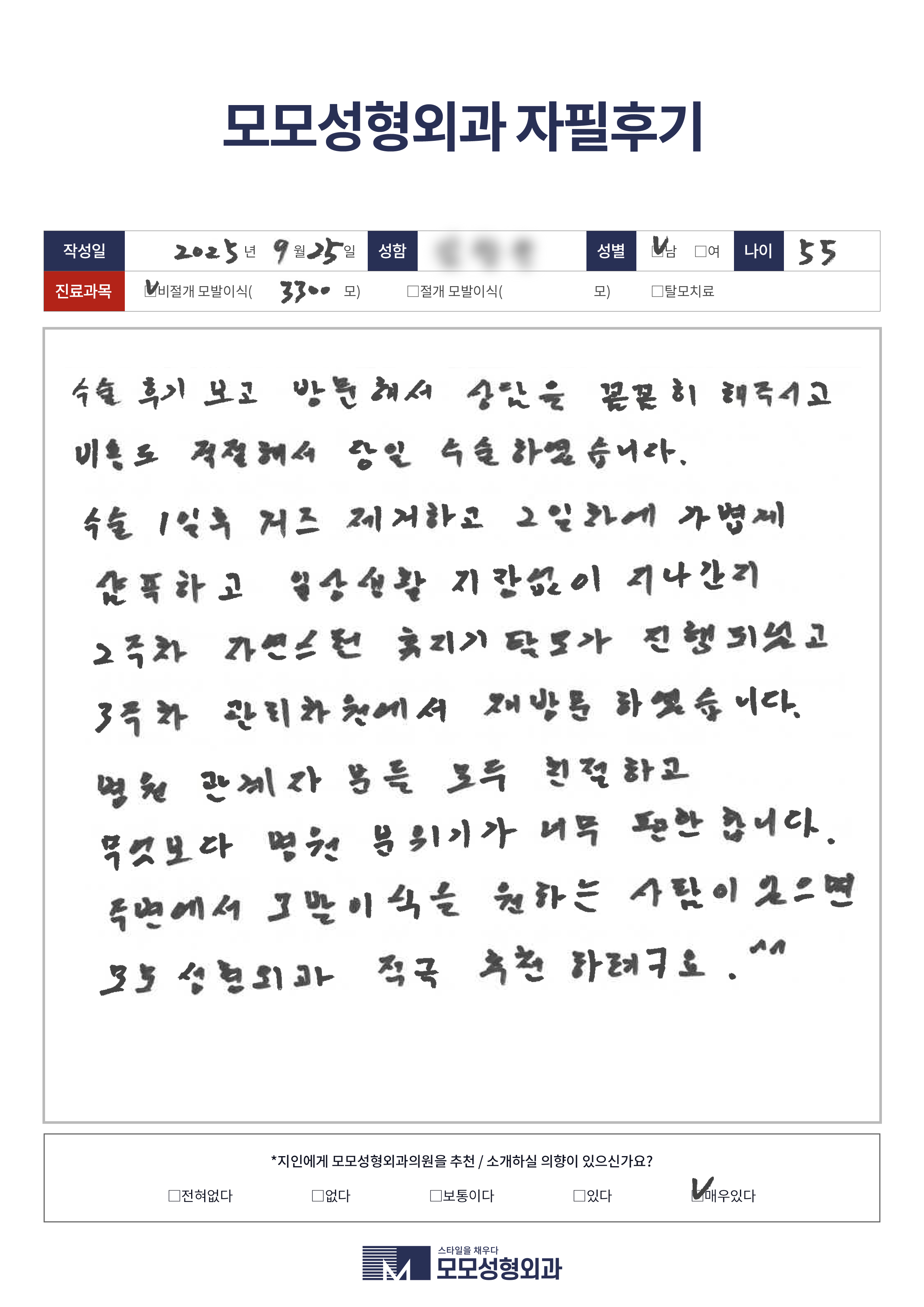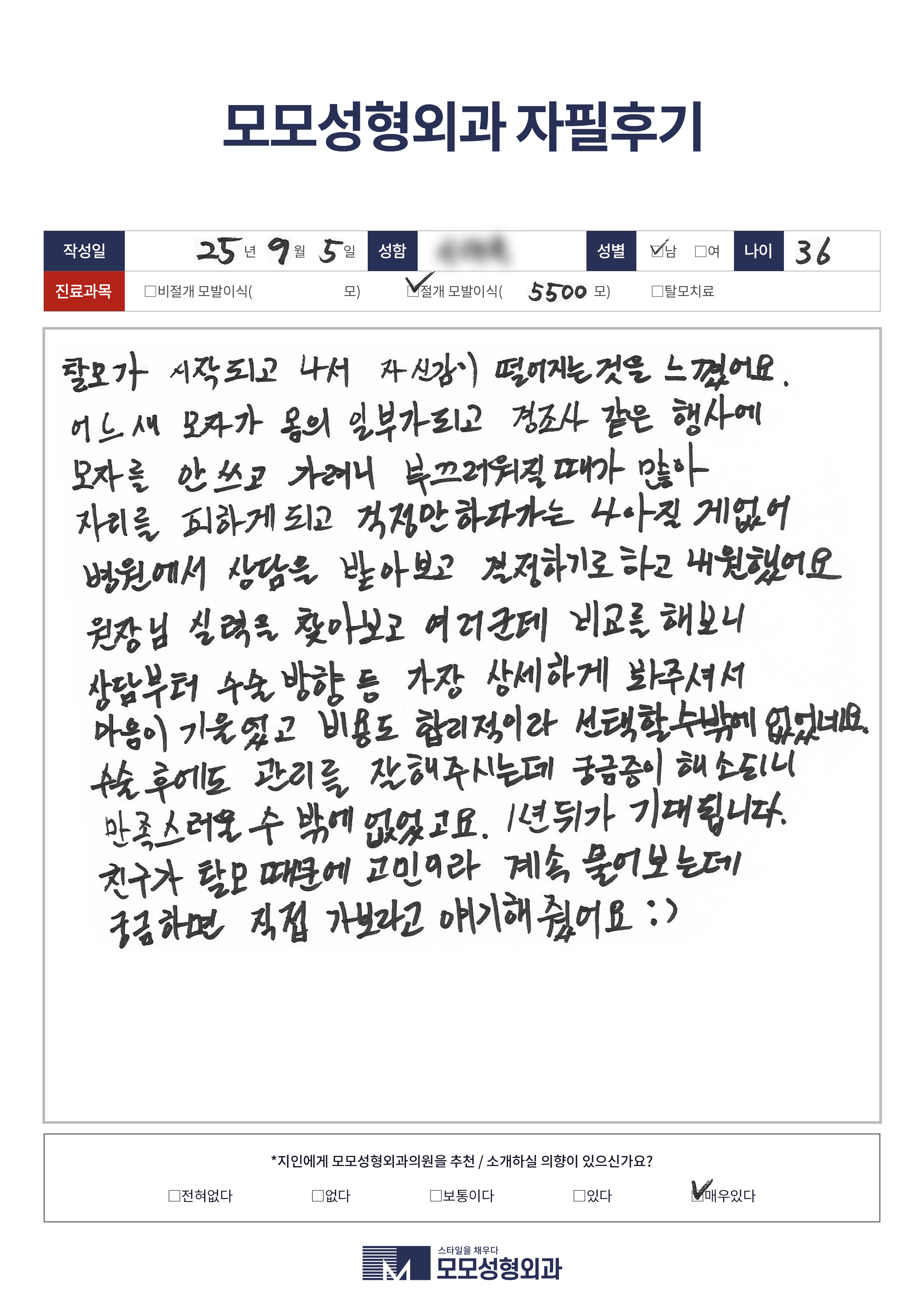 로그인 후에 확인하실 수 있습니다.[30대]비절개모발이식1500모이상, M자이마