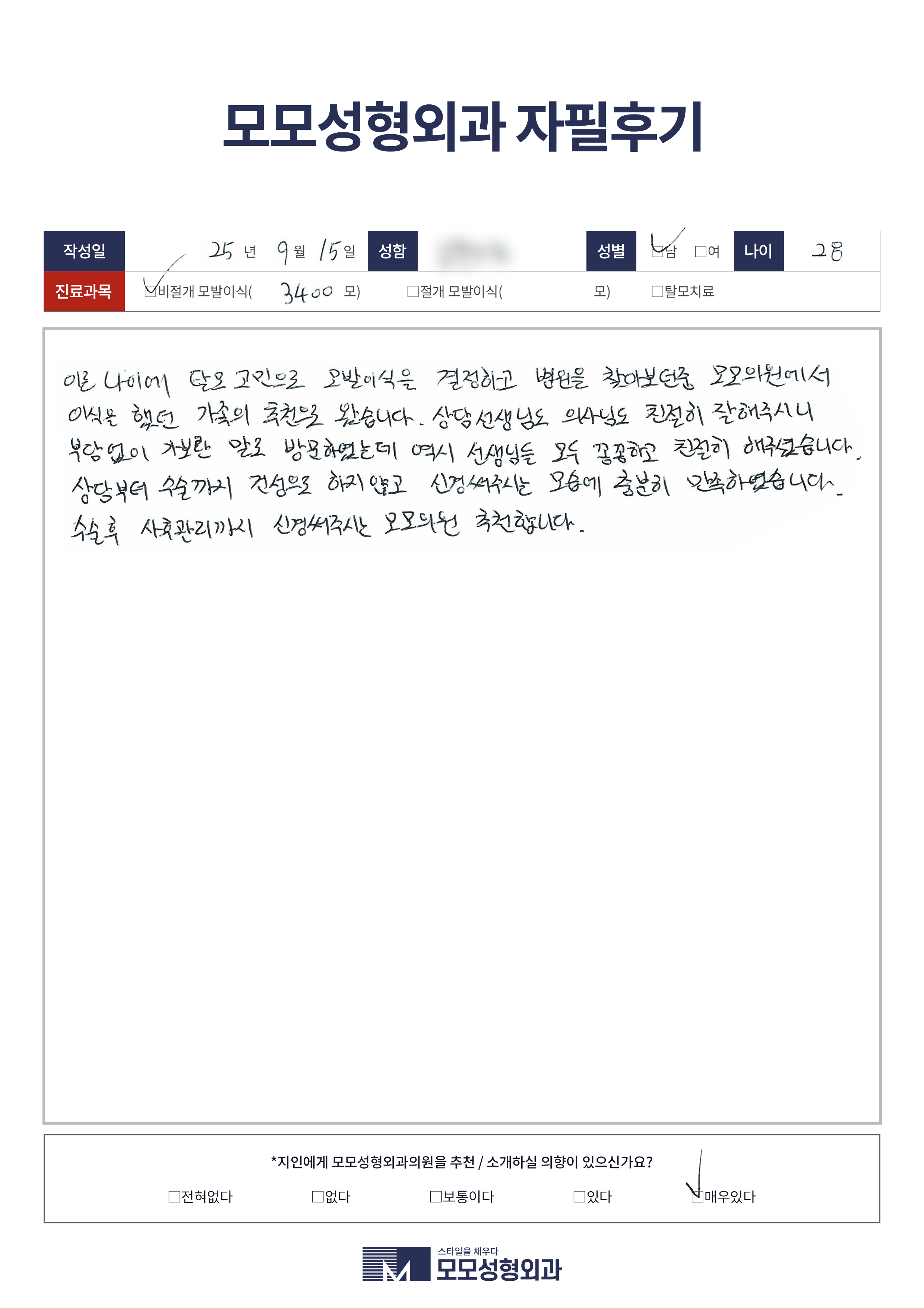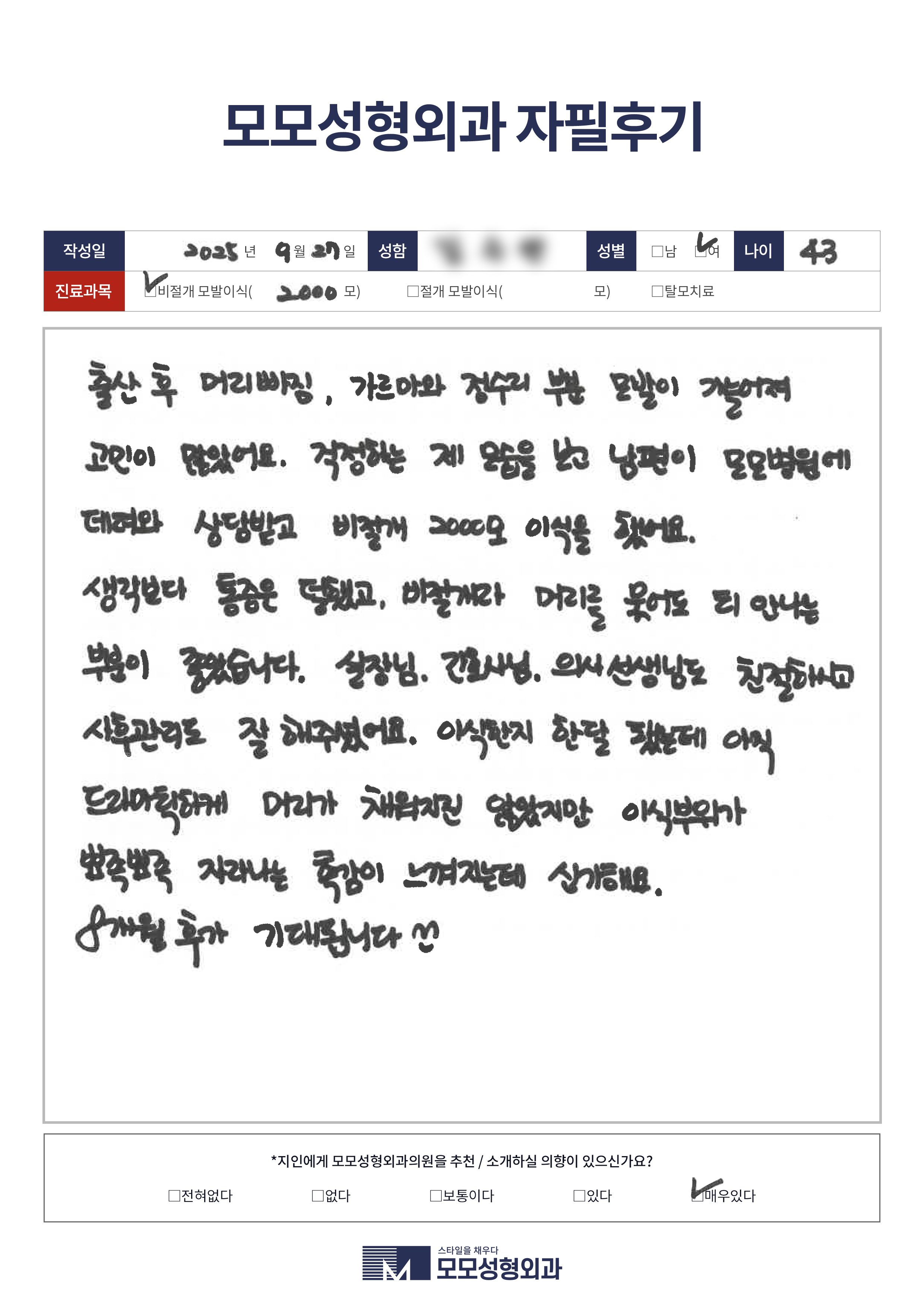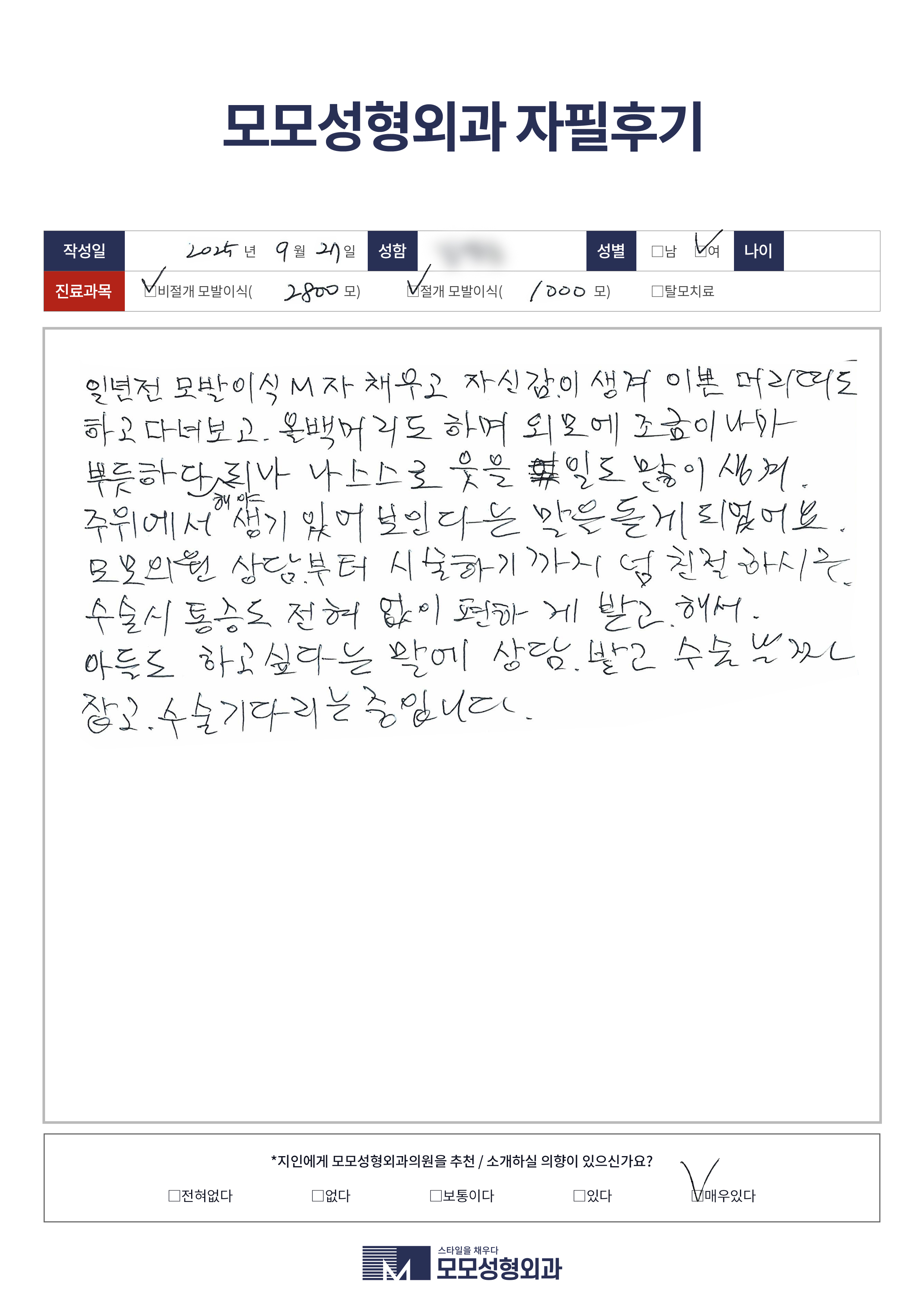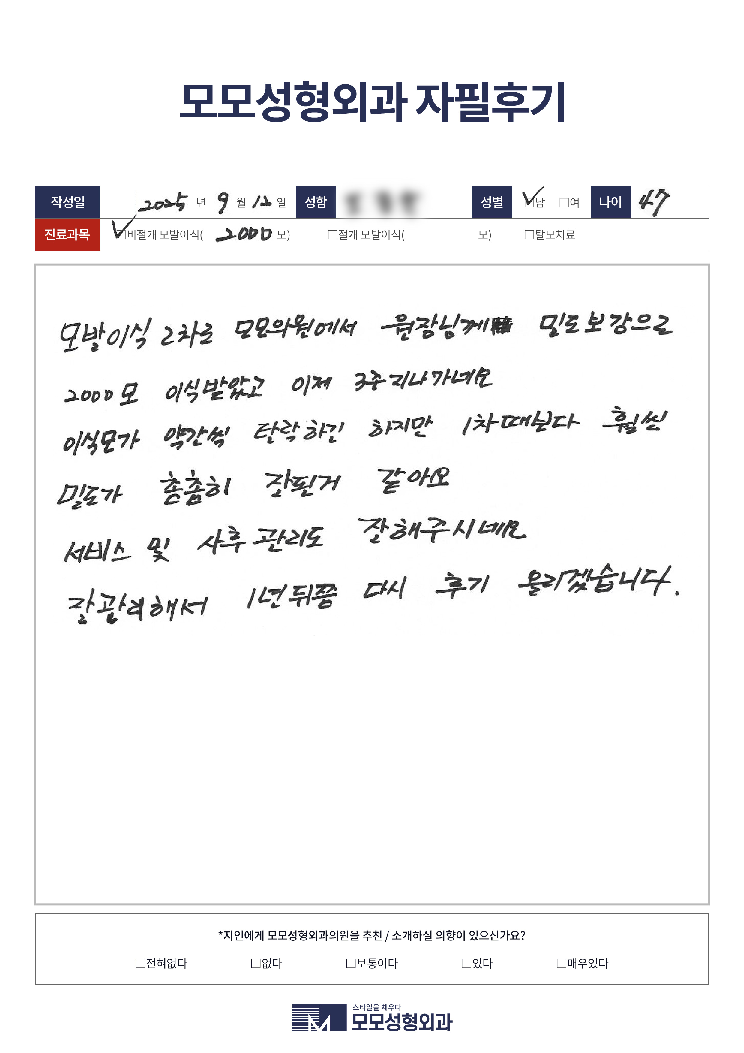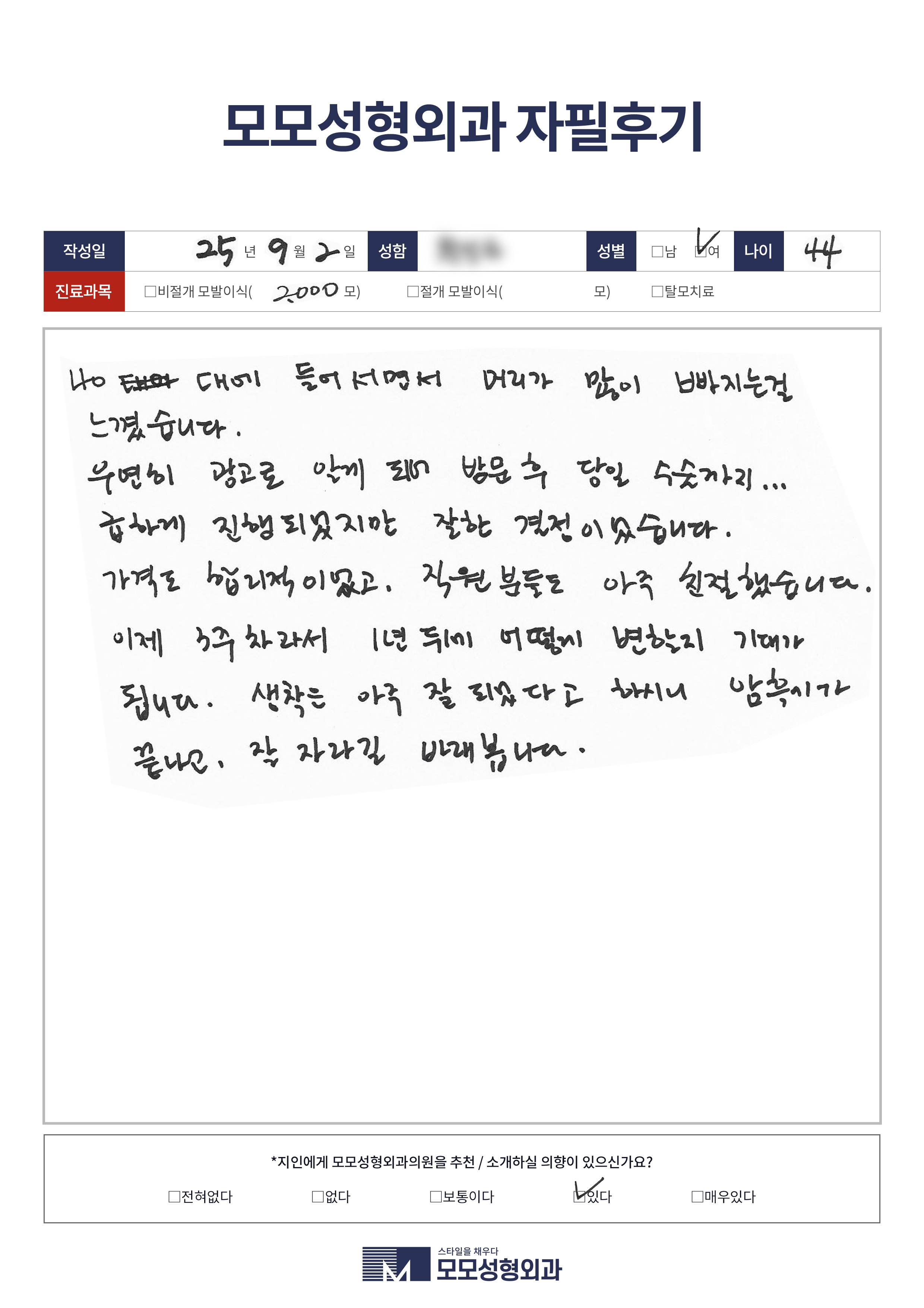 로그인 후에 확인하실 수 있습니다.[40대]비절개모발이식2000모, M자이마