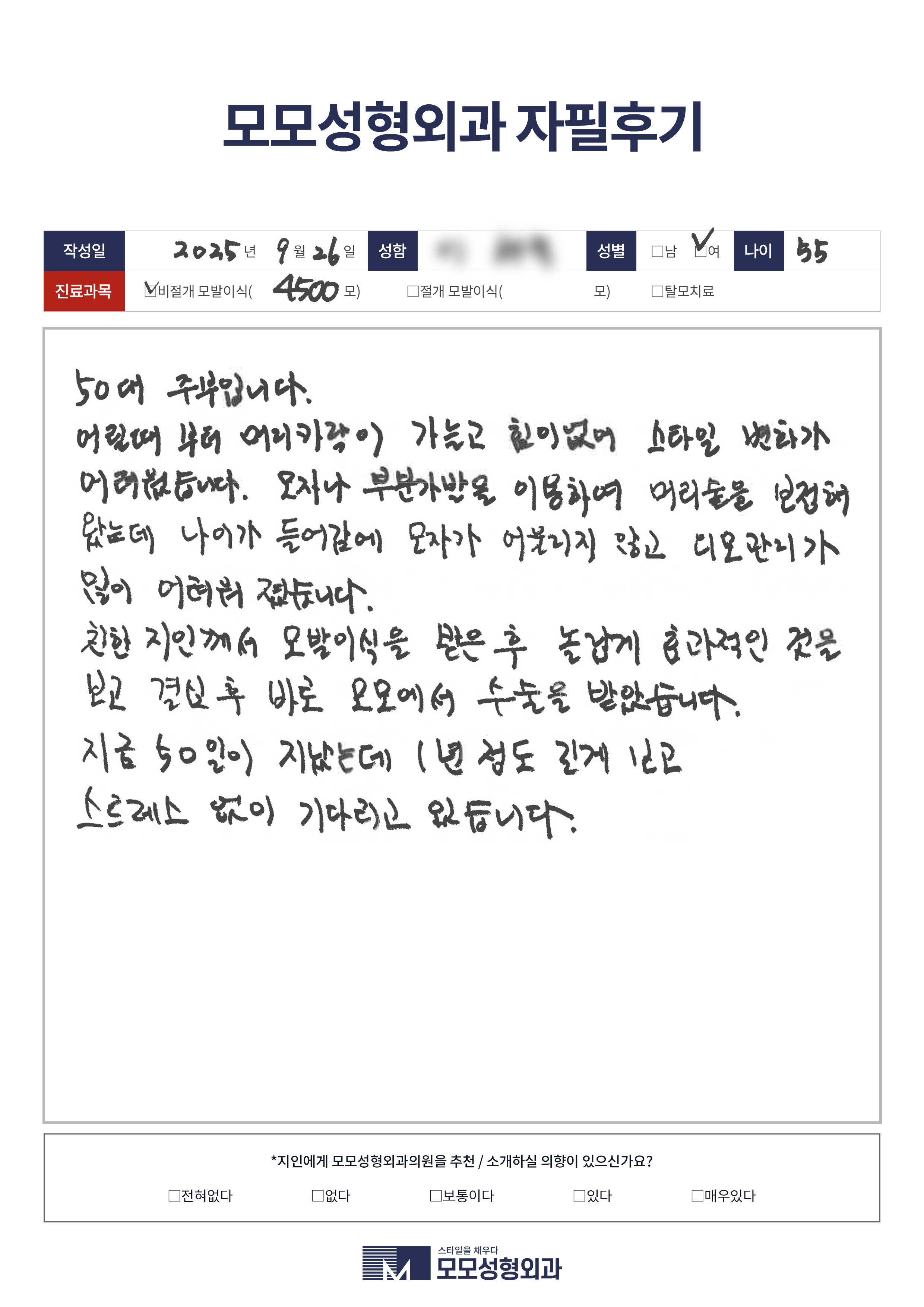 로그인 후에 확인하실 수 있습니다.[50대]비절개모발이식3500모, M자이마